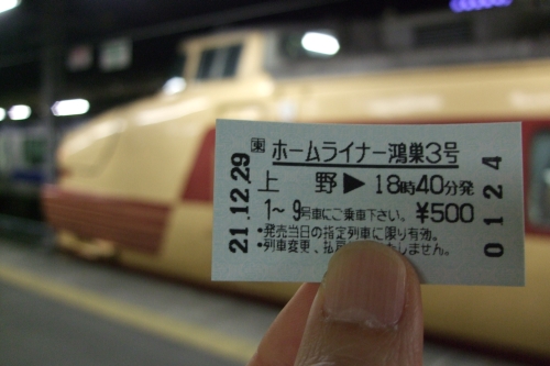 091200-hl.jpg先日、上野駅で撮影した「ホームライナー鴻巣3号」のライナー券です。朝に各種夜行列車や583系などを撮影した後、昼間も若干撮影活動をしました。深夜に乗車する「ムーンライトながら」までかなり時間があるため、夕方には貴重なボンネット車両に乗っておくことにしました。今回の遠征は全区間青春18切符を使用したため、「ホームライナー」にはライナー券代500円をプラスするだけで乗車することができます。国鉄特急車両乗車、ワクワクしました。