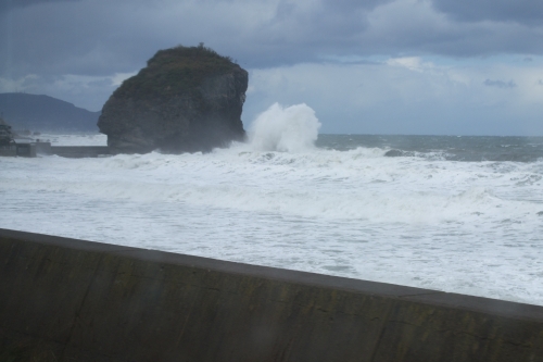先日北海道を訪問した際、朝里駅と銭函駅の中間付近を走行中の列車内から撮影した海です。今まで何度か通ったことがありますが、この日は海がとても荒れていて驚きました。波が家の数倍の高さに打ち上がっていたのに怖さすら感じました。翌日はいつもの平穏な海に戻っていました。冬場はもっとすごいのだろうと想像しました。